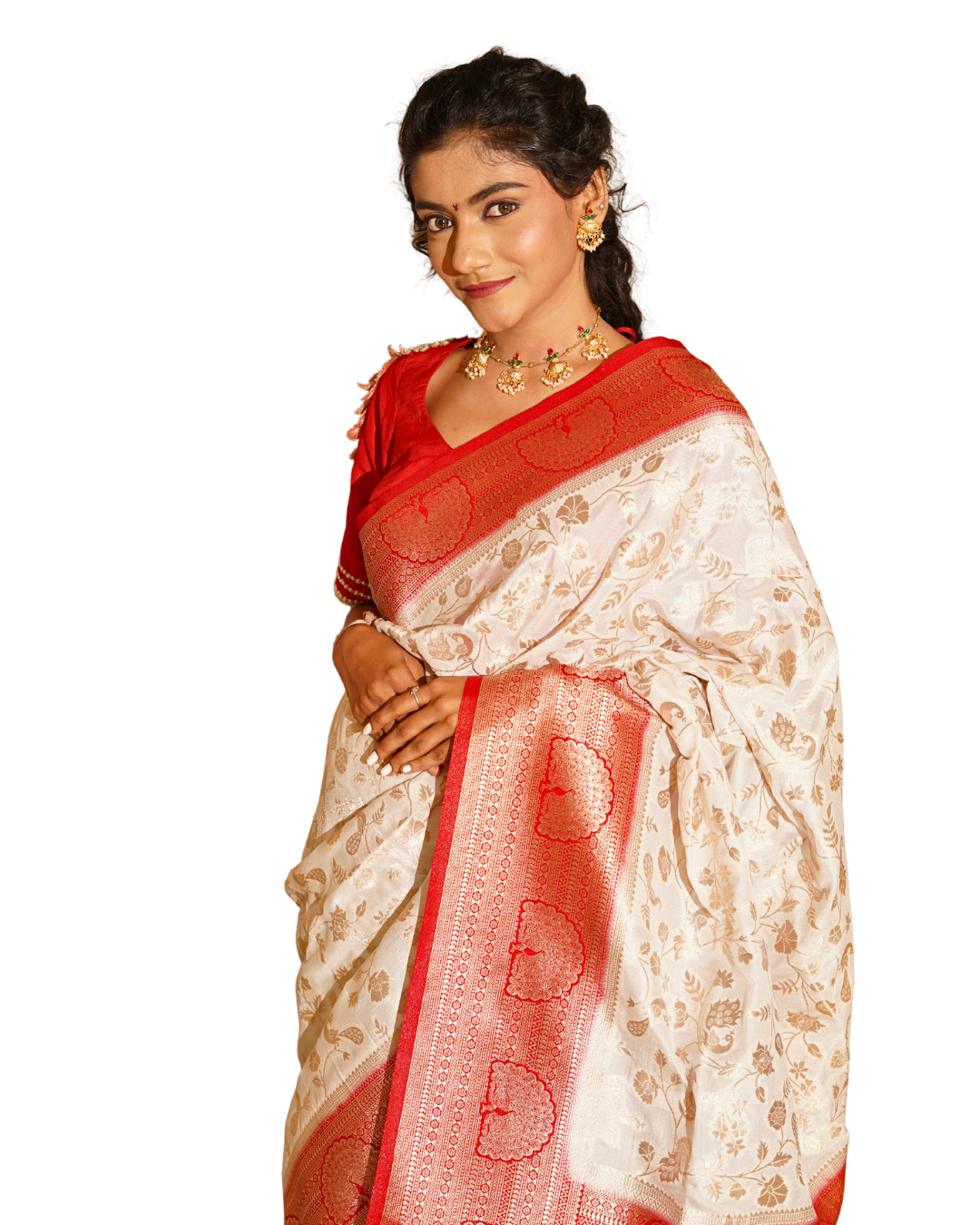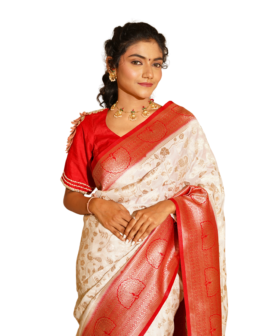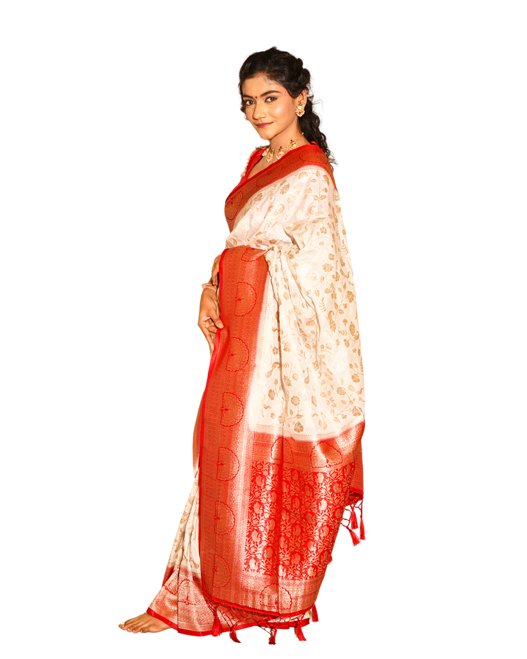 | Ivory & Red Soft Silk Paithani Saree with Peacock Border |