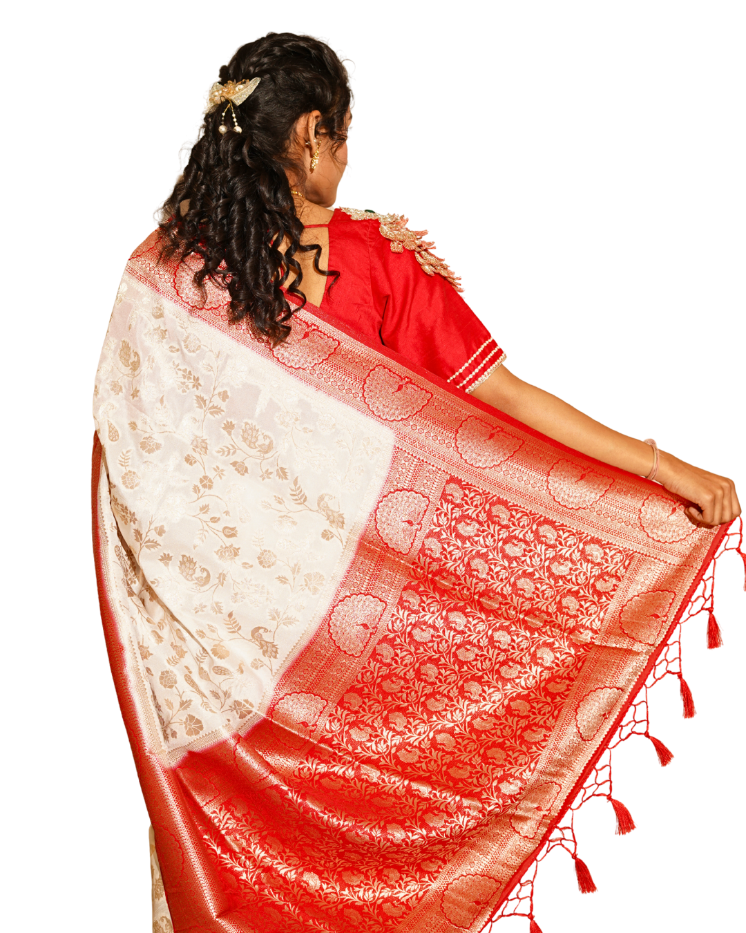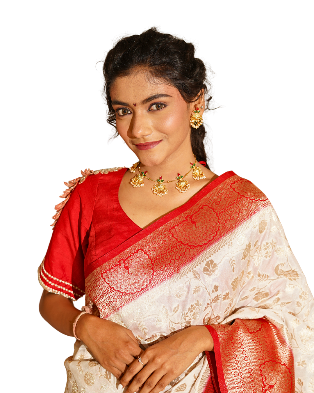 Ivory & Red Soft Silk Paithani Saree with Peacock Border |