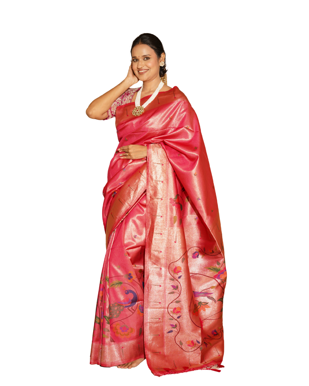 | Rose PinkSoft Silk Floral Saree |