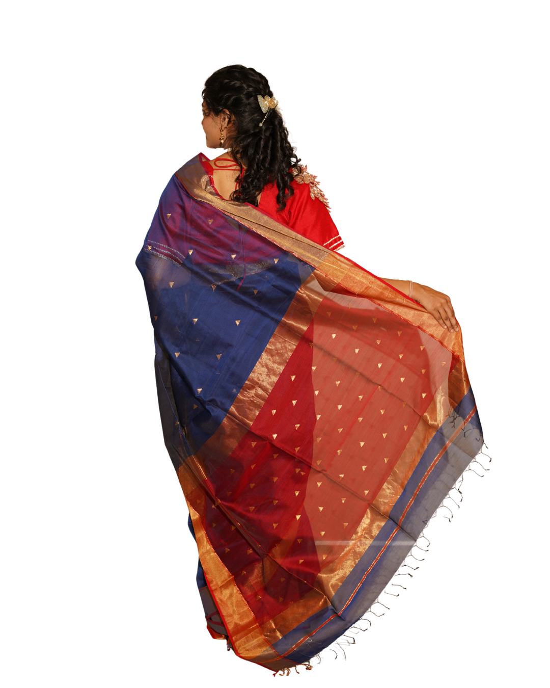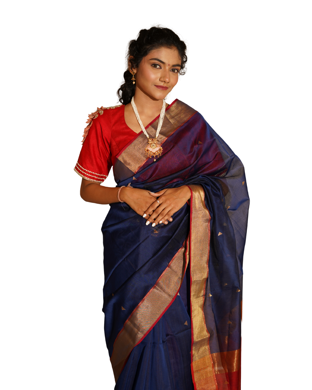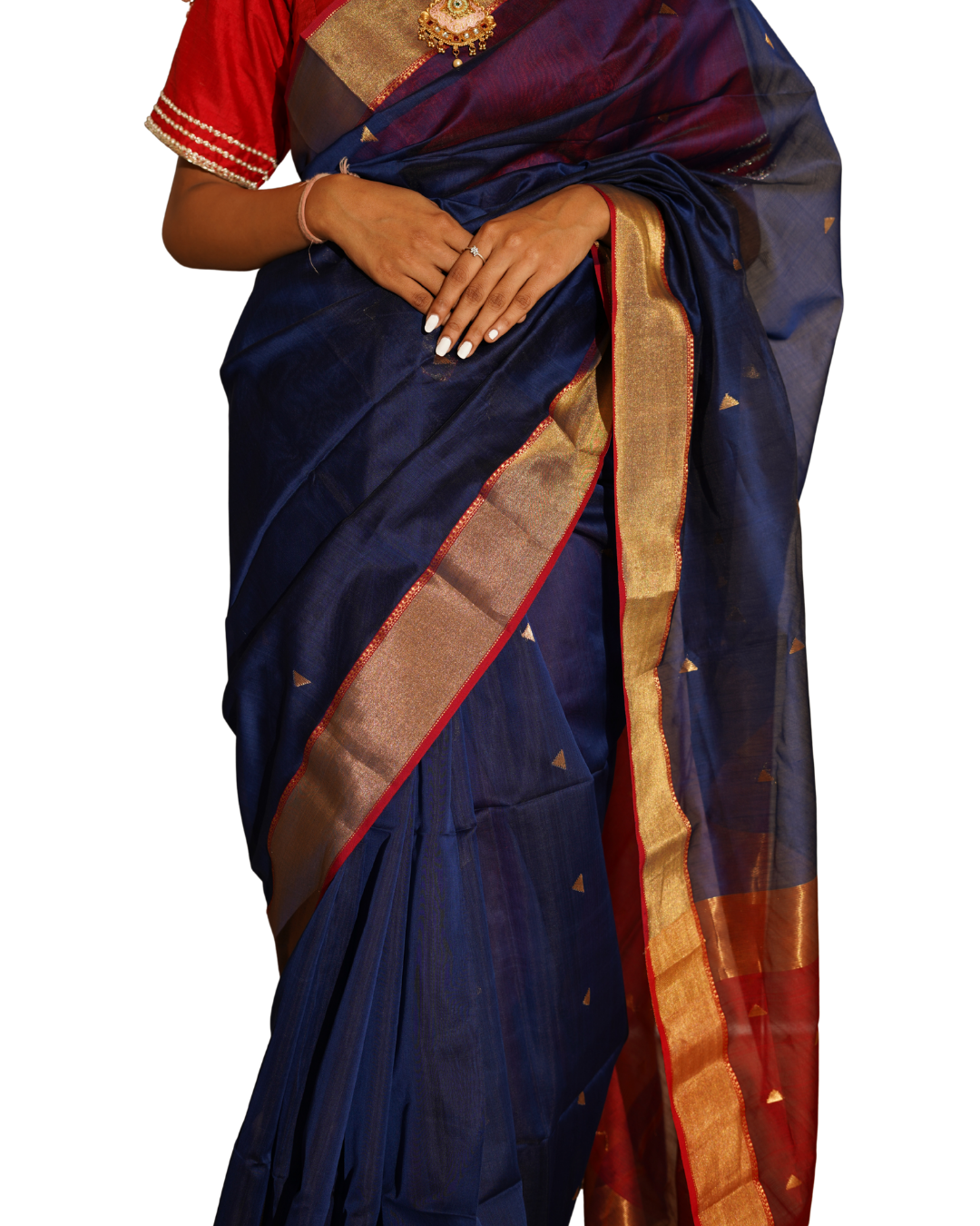Royal Blue Maheshwari Saree with Contrast Zari Border